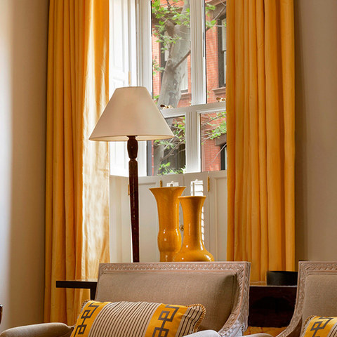 The curtains can be custom-made to reflect light and enhance the sheen of the